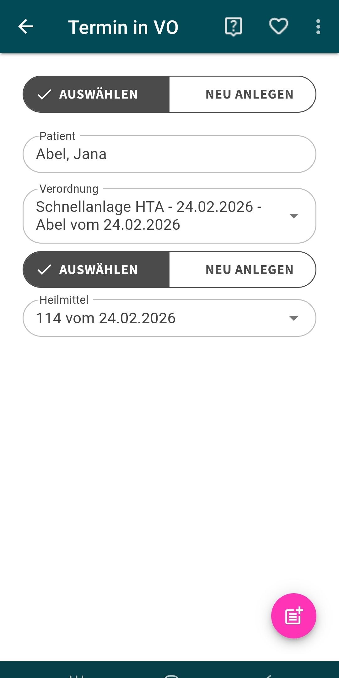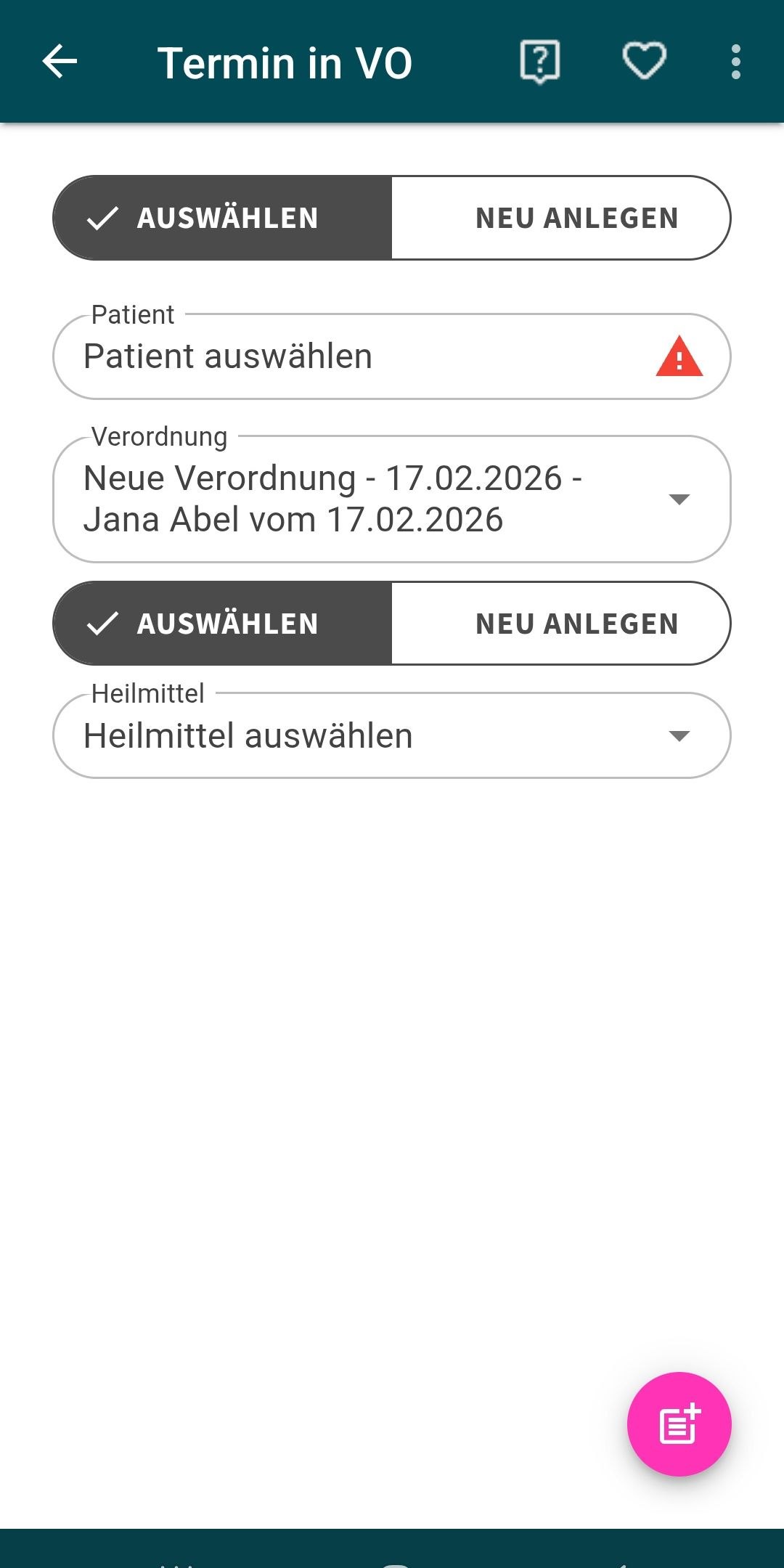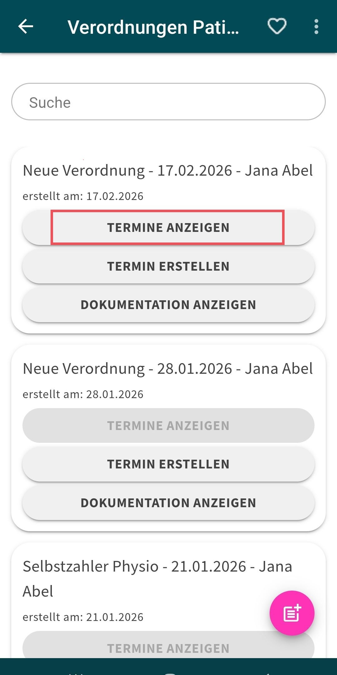 Hinweis: Du kannst einen Termin in Verordnung auch über das magentafarbene Listensymbol mit dem Plus erstellen
