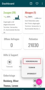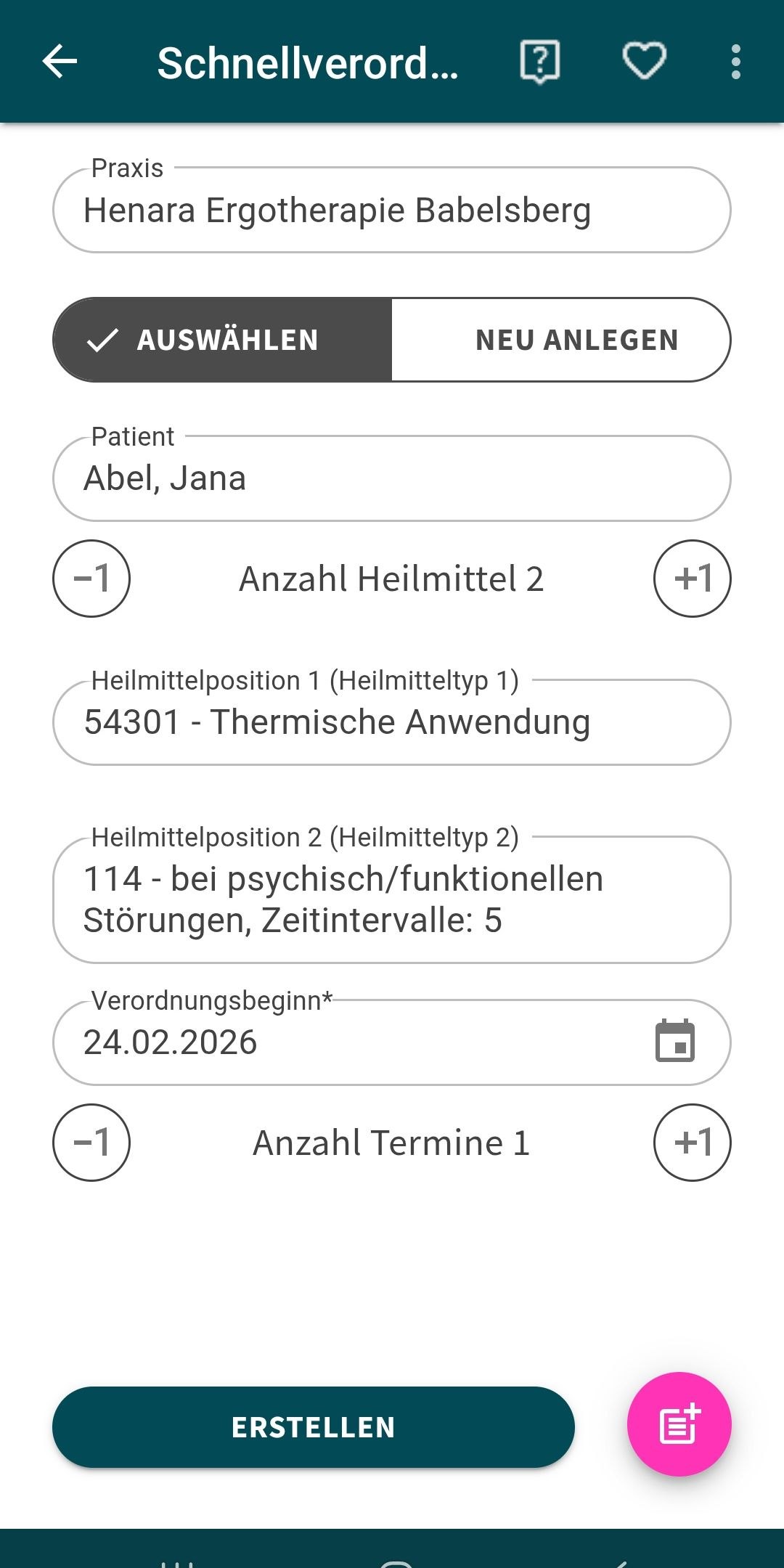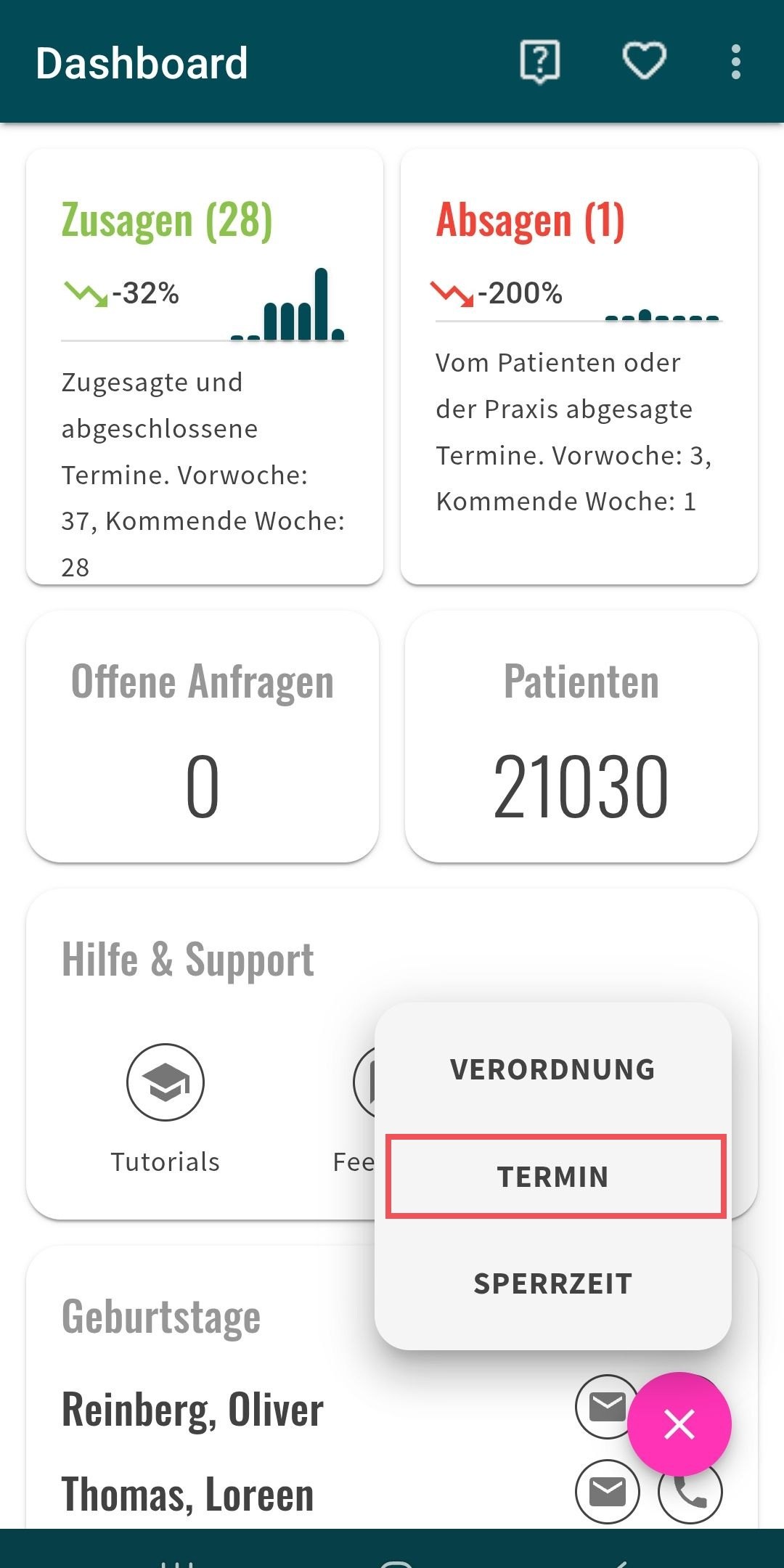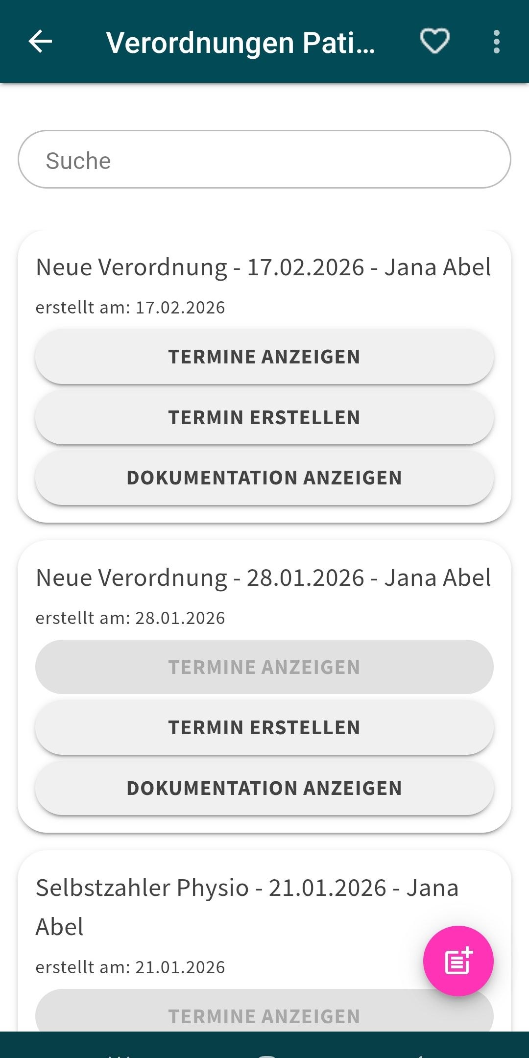 Hinweis: Du kannst einen Termin in Verordnung auch über das magentafarbene Listensymbol mit dem Plus erstellen