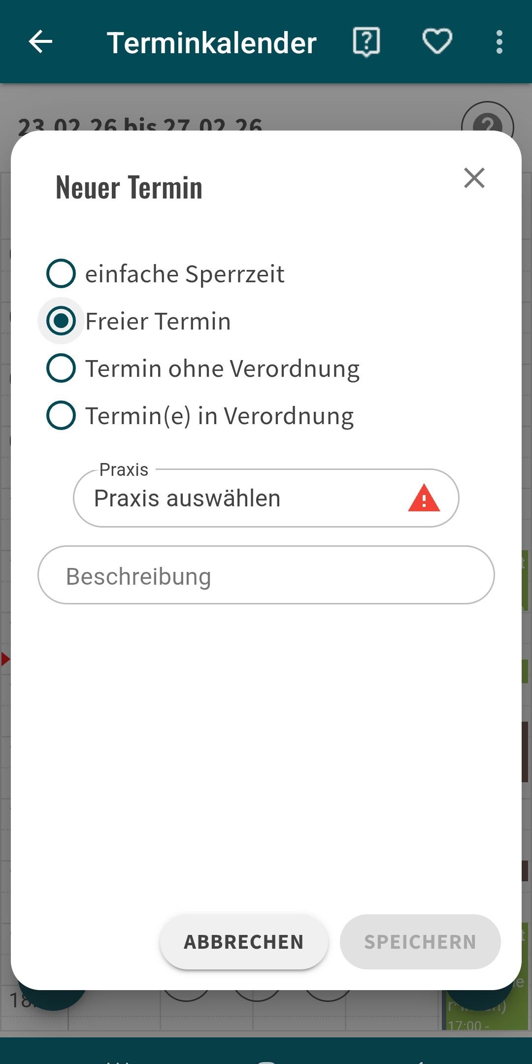 Nun hast du die Wahl zwischen „Verordnung“, „Termin“ und „Sperrzeit“