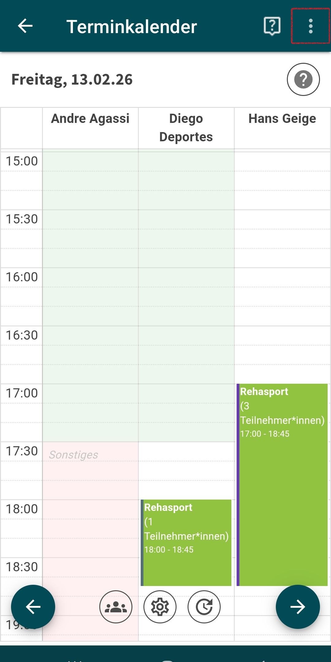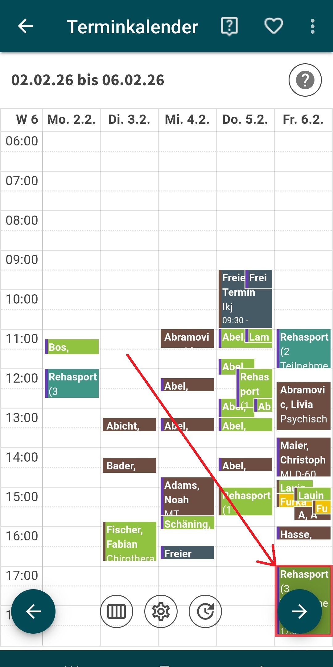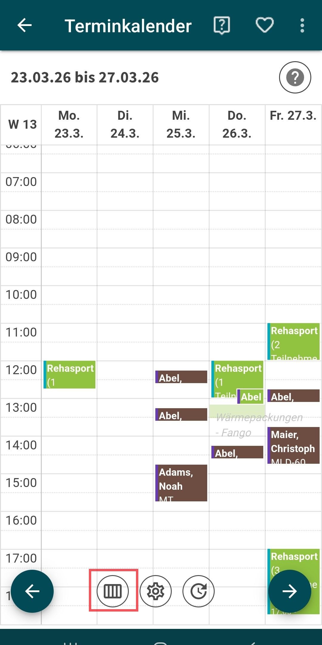 Achte drauf, dass du dich in der Wochen- oder Therapeutenansicht befindest