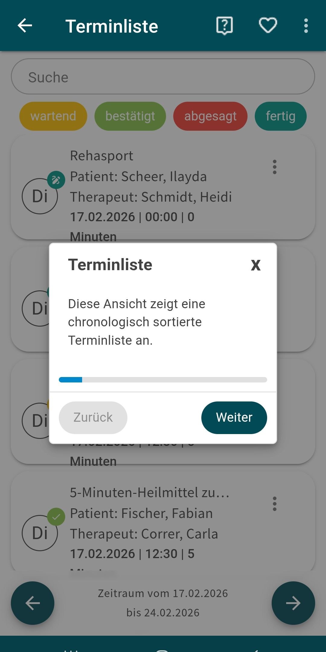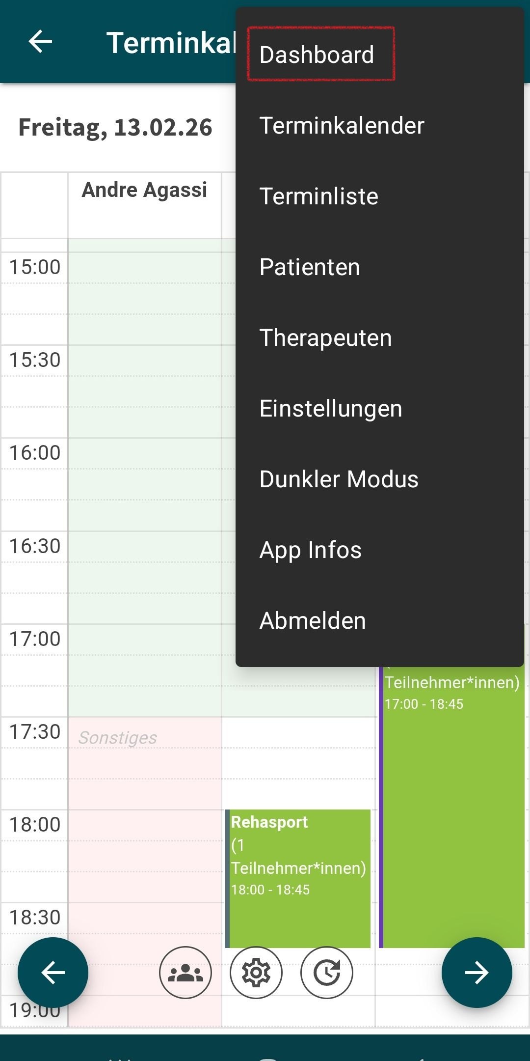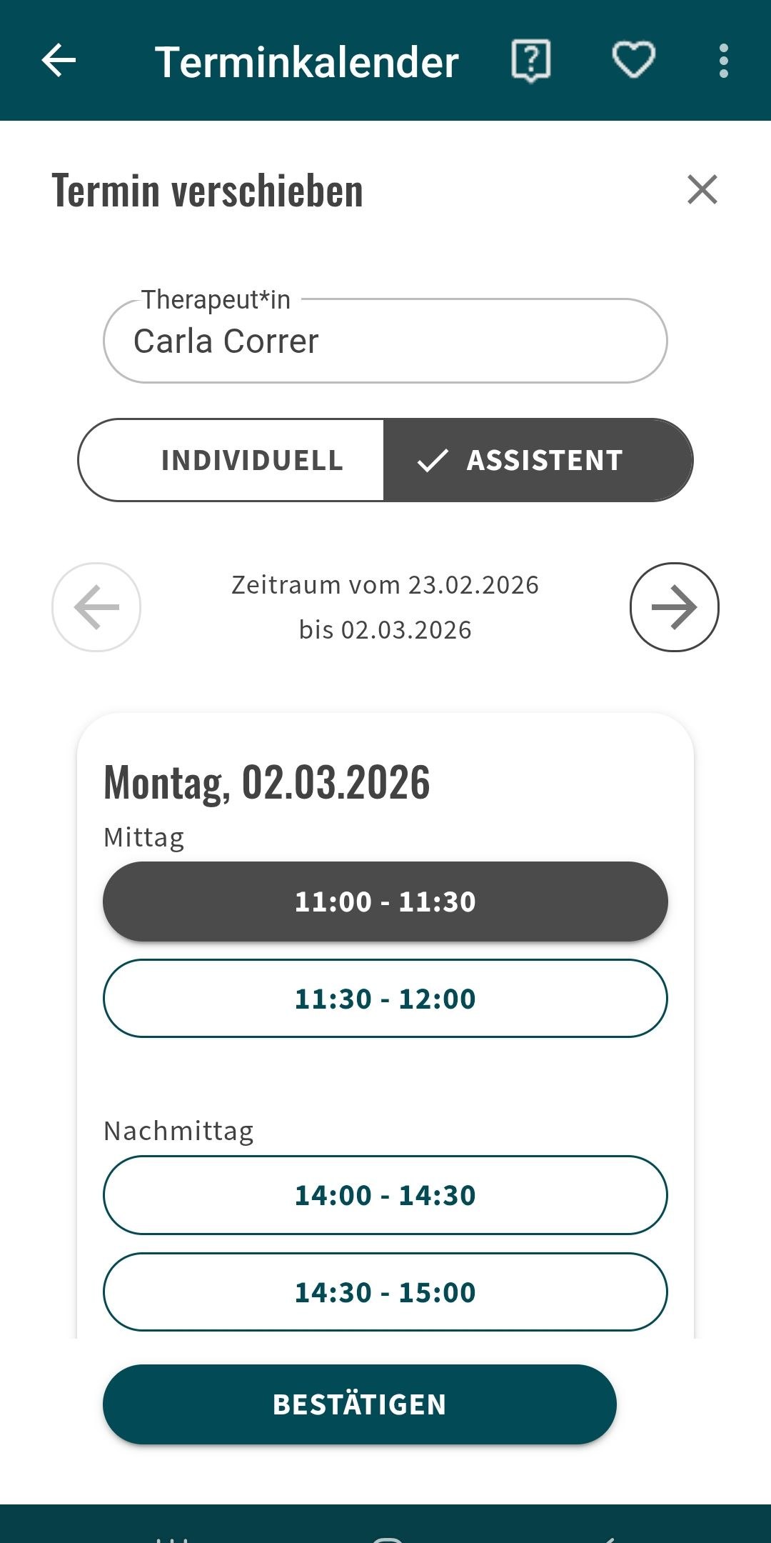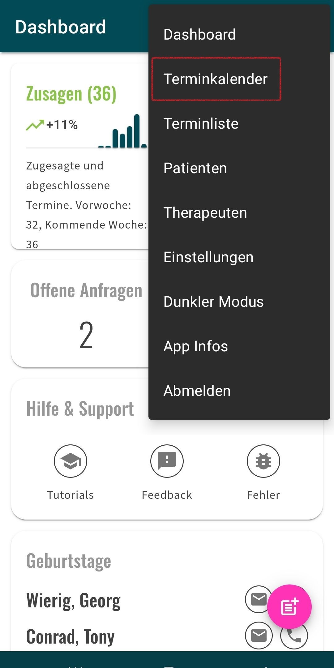Achte drauf, dass du dich in der Wochen- oder Therapeutenansicht befindest