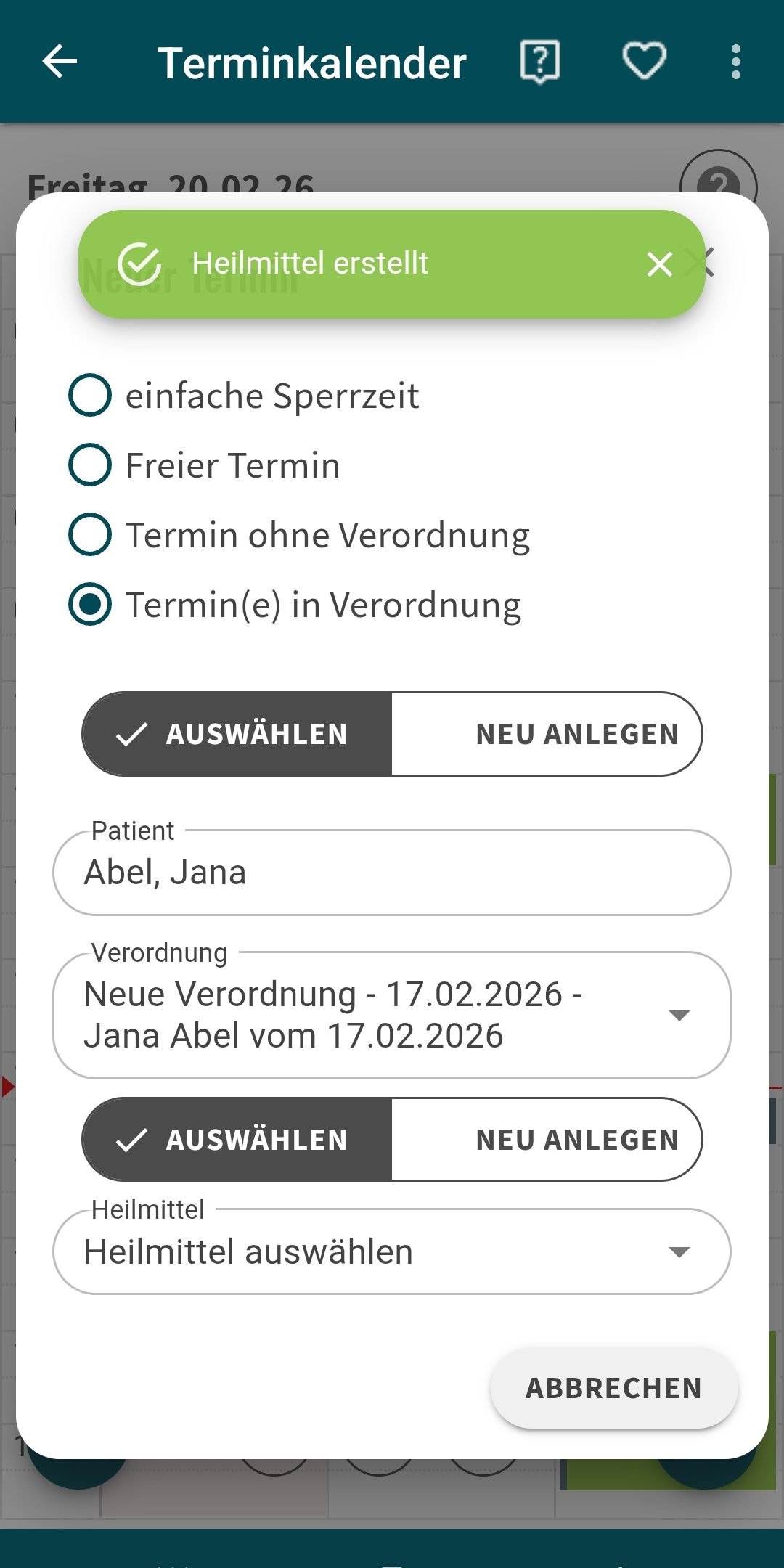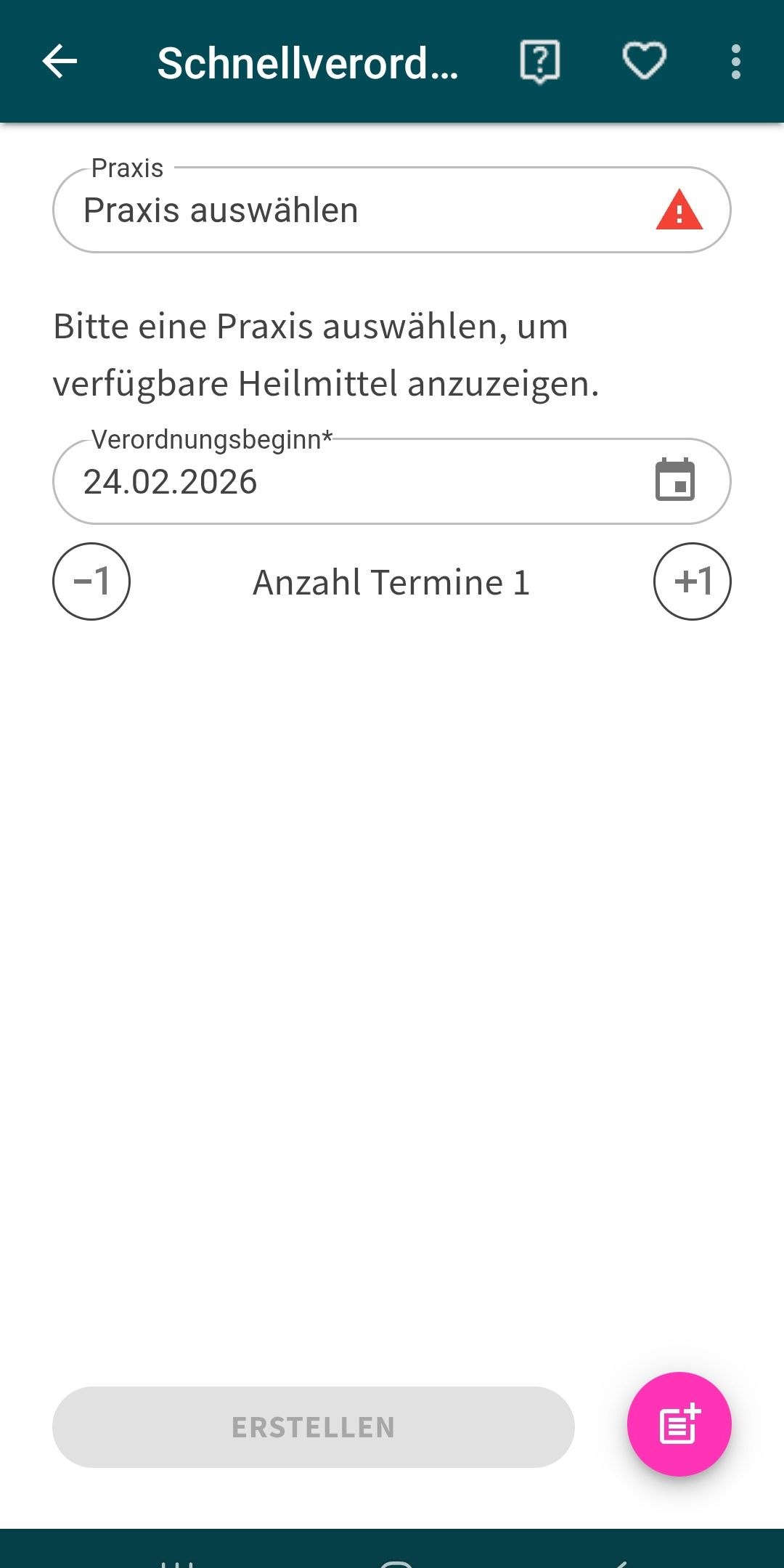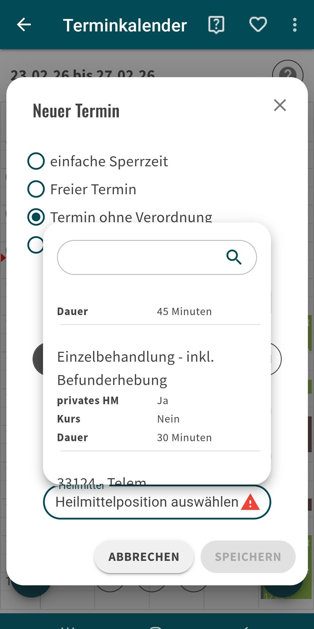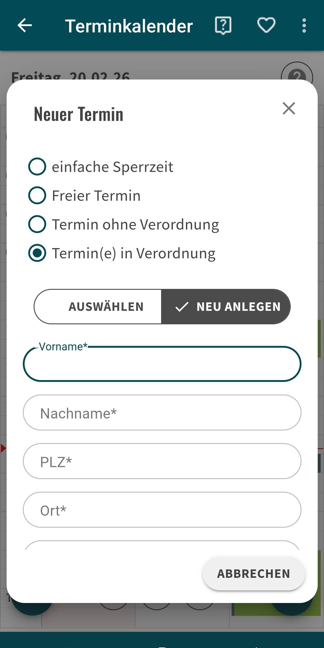 Einzeltermin ohne VO: Wenn keine Verordnung vorliegt und du lediglich einen Einzeltermin anlegen möchtest, wähle diese Option