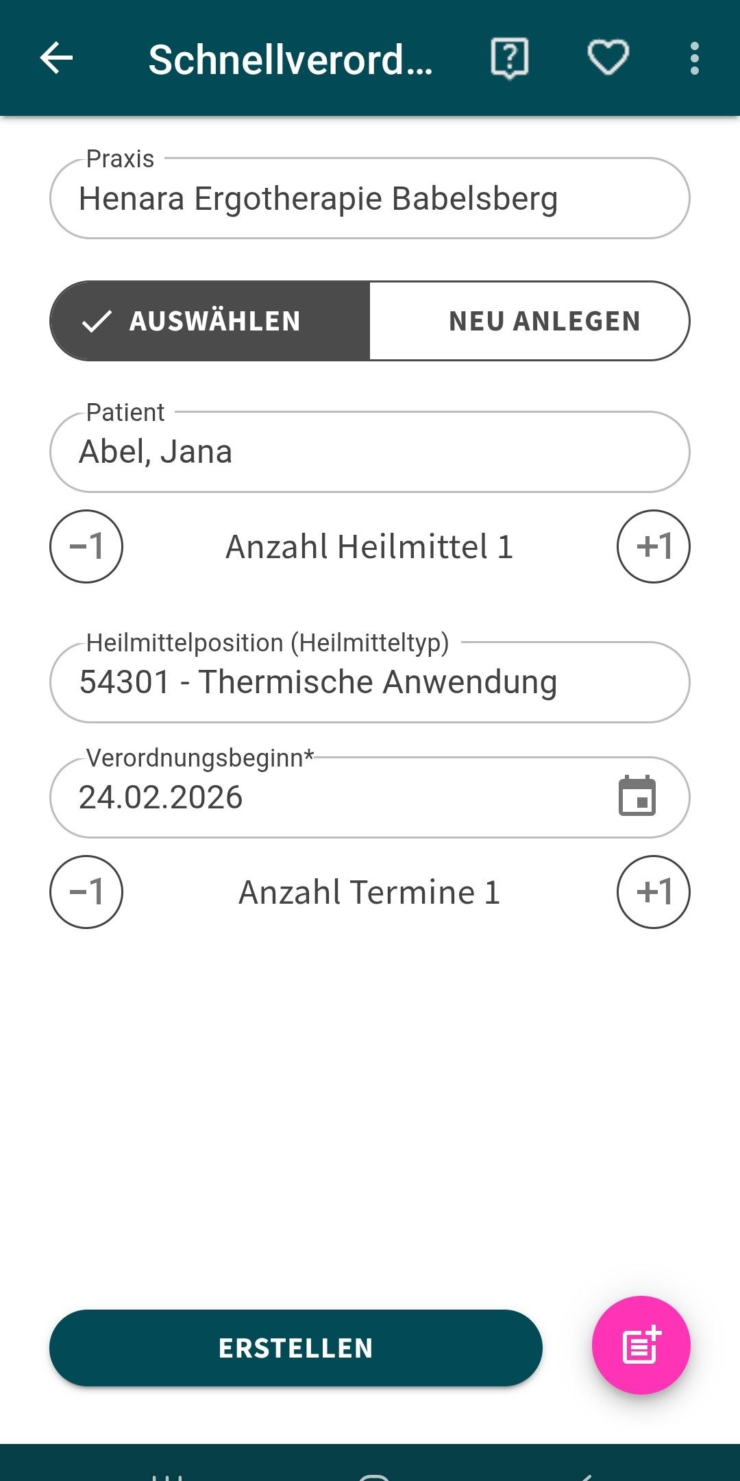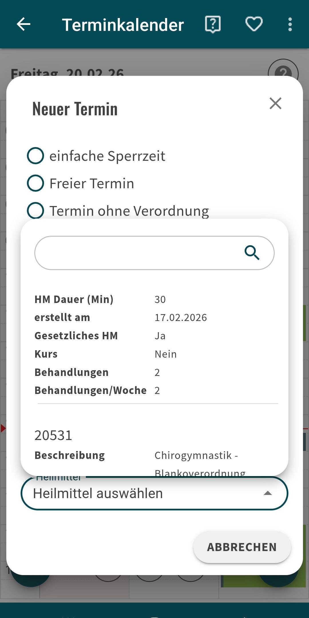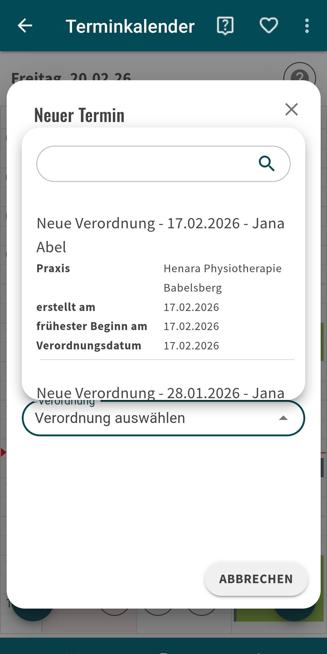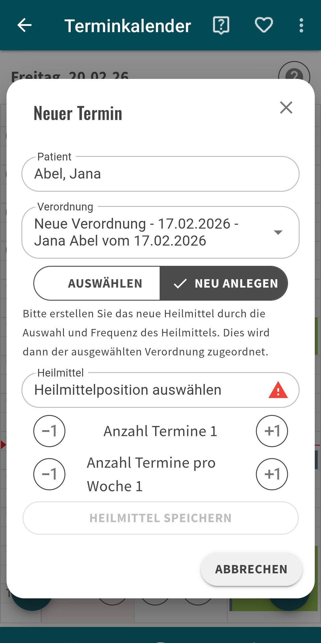 Einzeltermin ohne VO: Wenn keine Verordnung vorliegt und du lediglich einen Einzeltermin anlegen möchtest, wähle diese Option