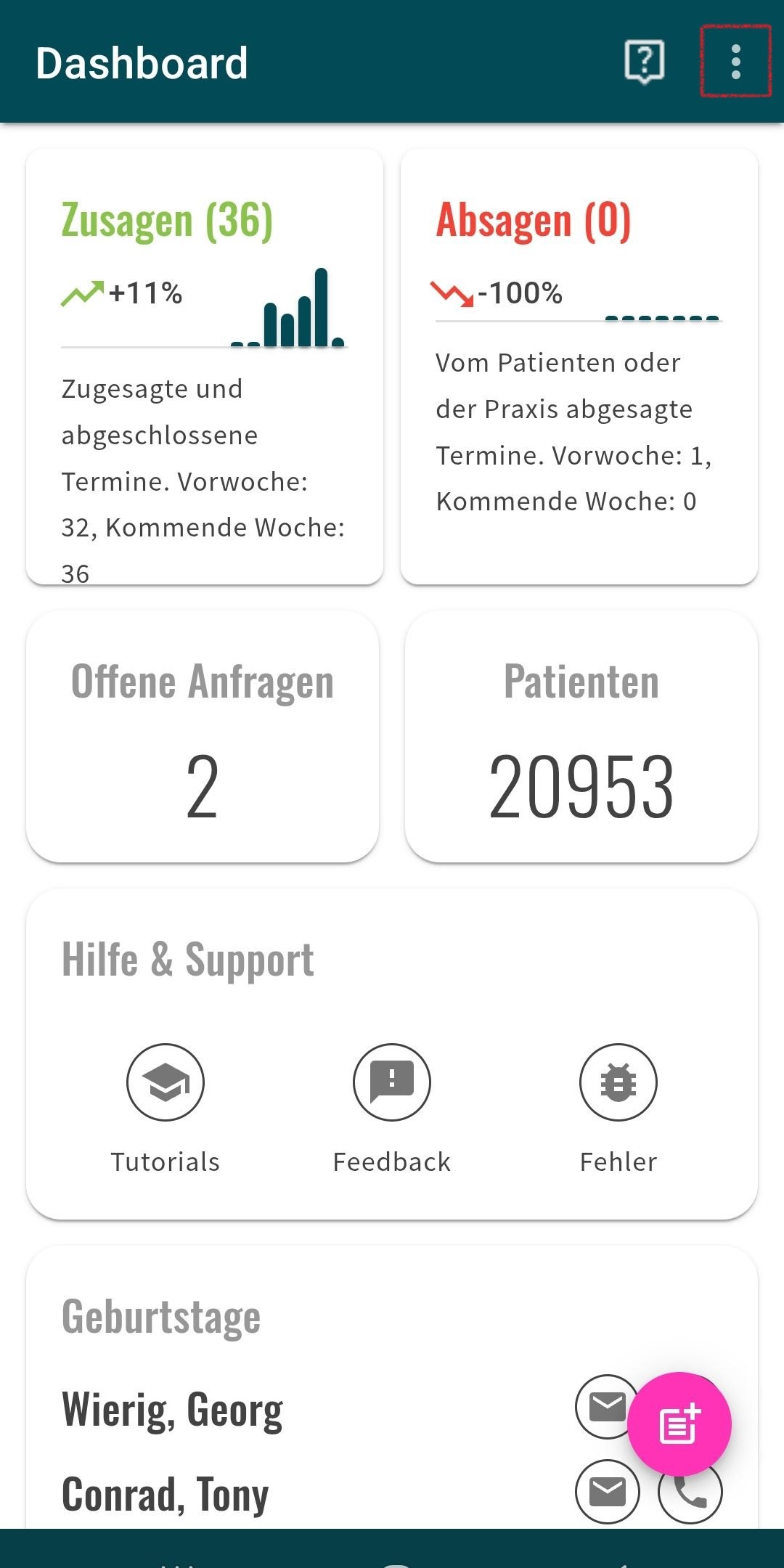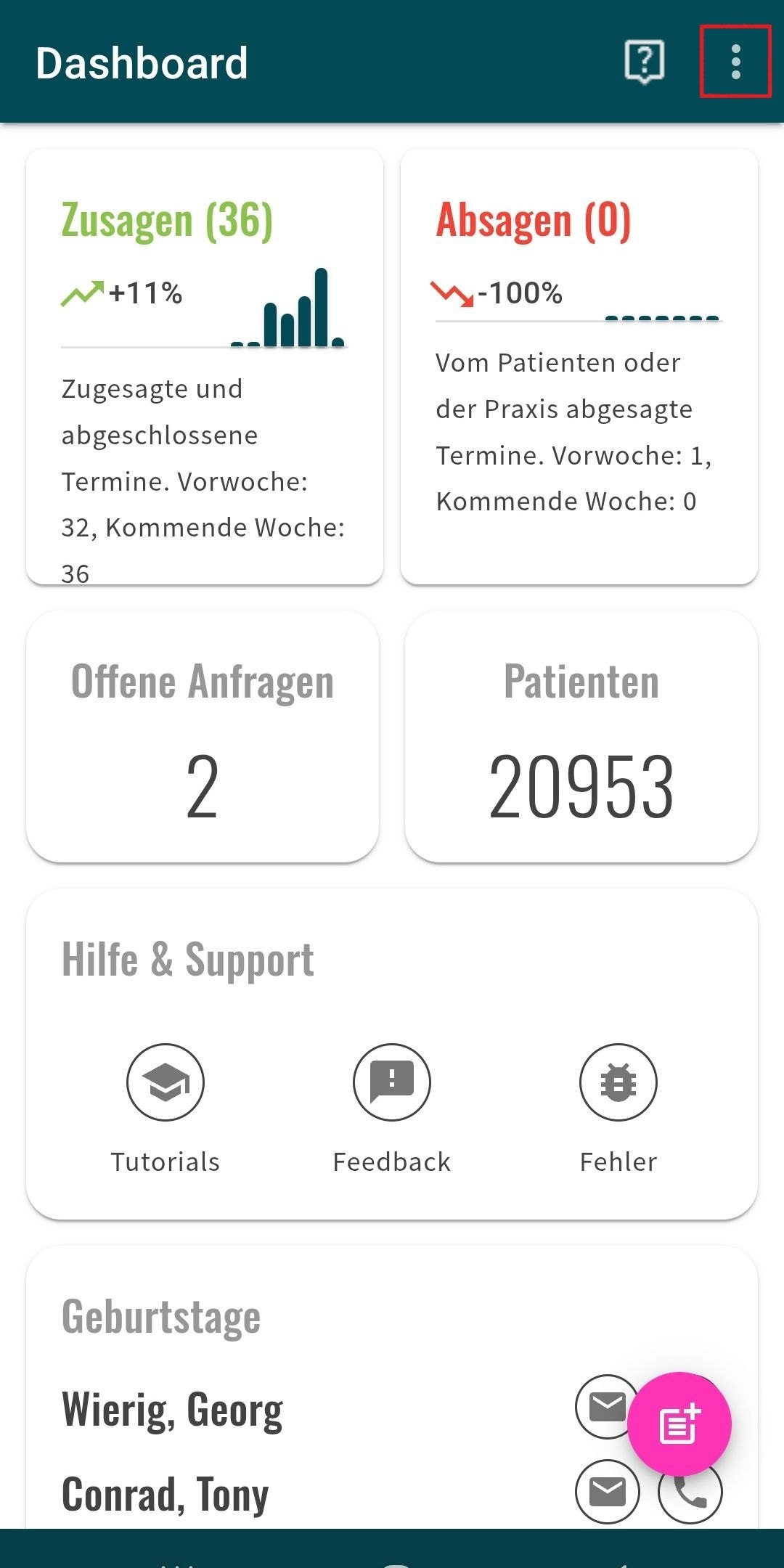 Tippe auf die drei Punkte neben dem Patientennamen, um mehr Informationen über ihn zu erhalten