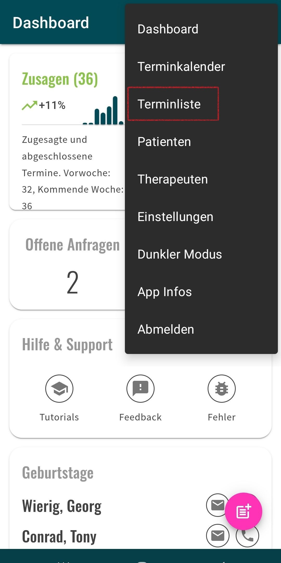 Du hast auch die Möglichkeit, Termine über die Terminliste abzurufen