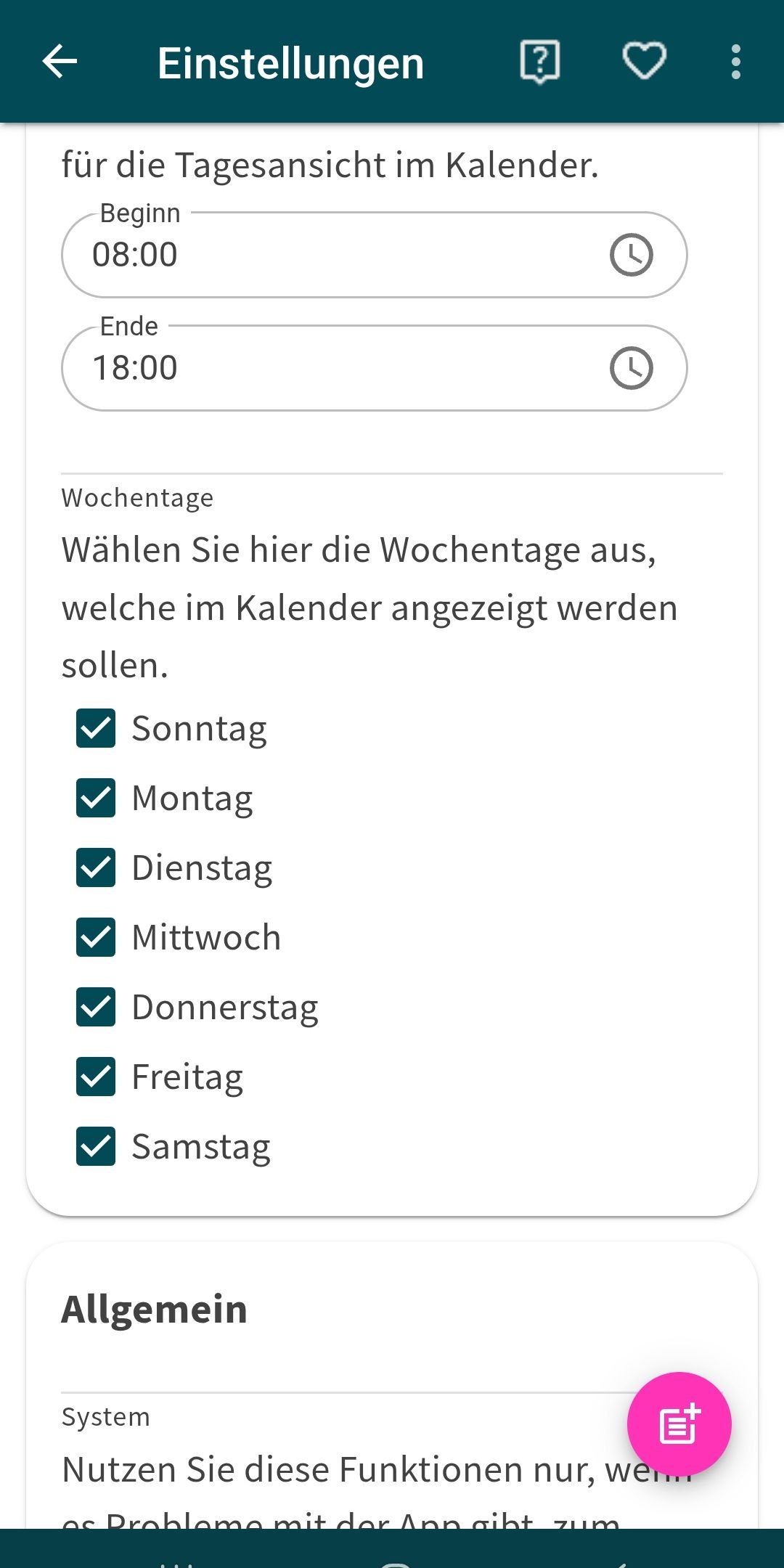 Passe weiter unten die Start- und Endzeit im Kalender an