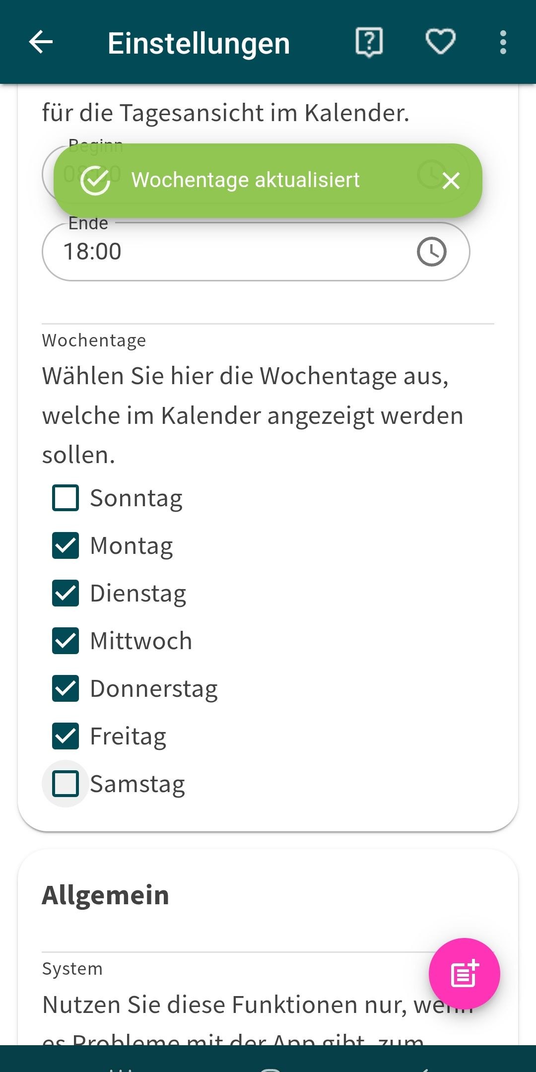 Zurück im Kalender werden die vorgenommenen Einstellungen angezeigt