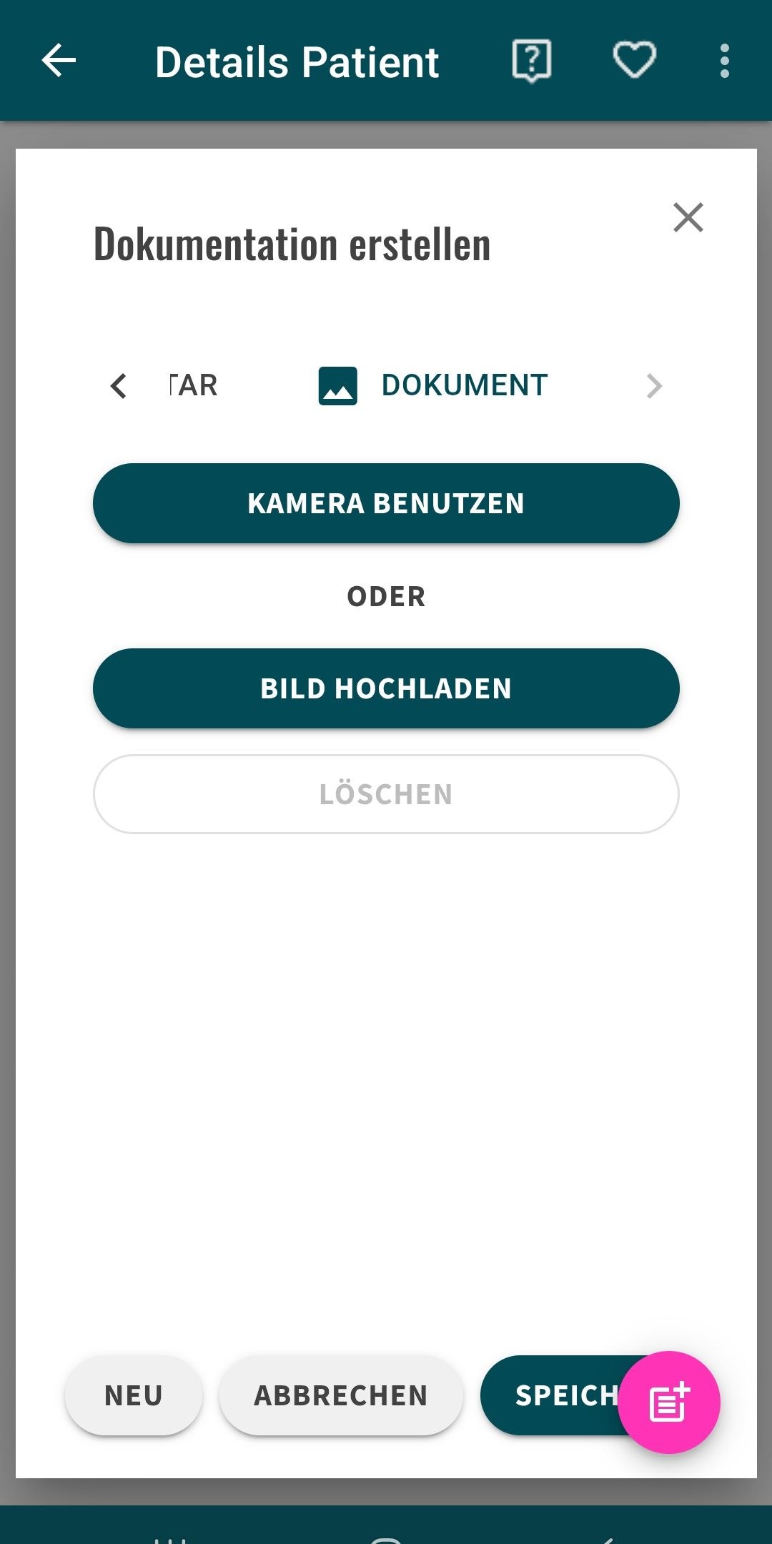 b) Dokumente: Wenn du den Reiter „Dokumente“ wählst, gelangst du zur Auswahl zwischen „Kamera benutzen“ und „Bild hochladen“