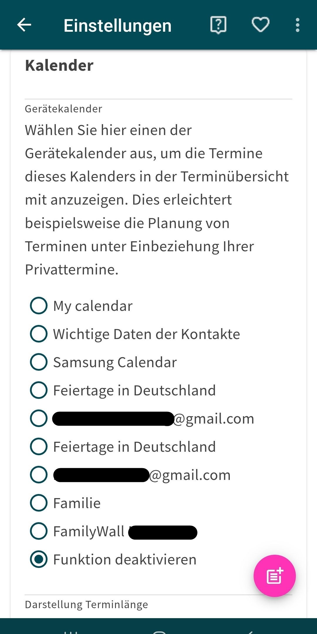 Scrolle runter, bis du zur Überschrift „Kalender“ und wähle dort „Darstellung Terminlänge“