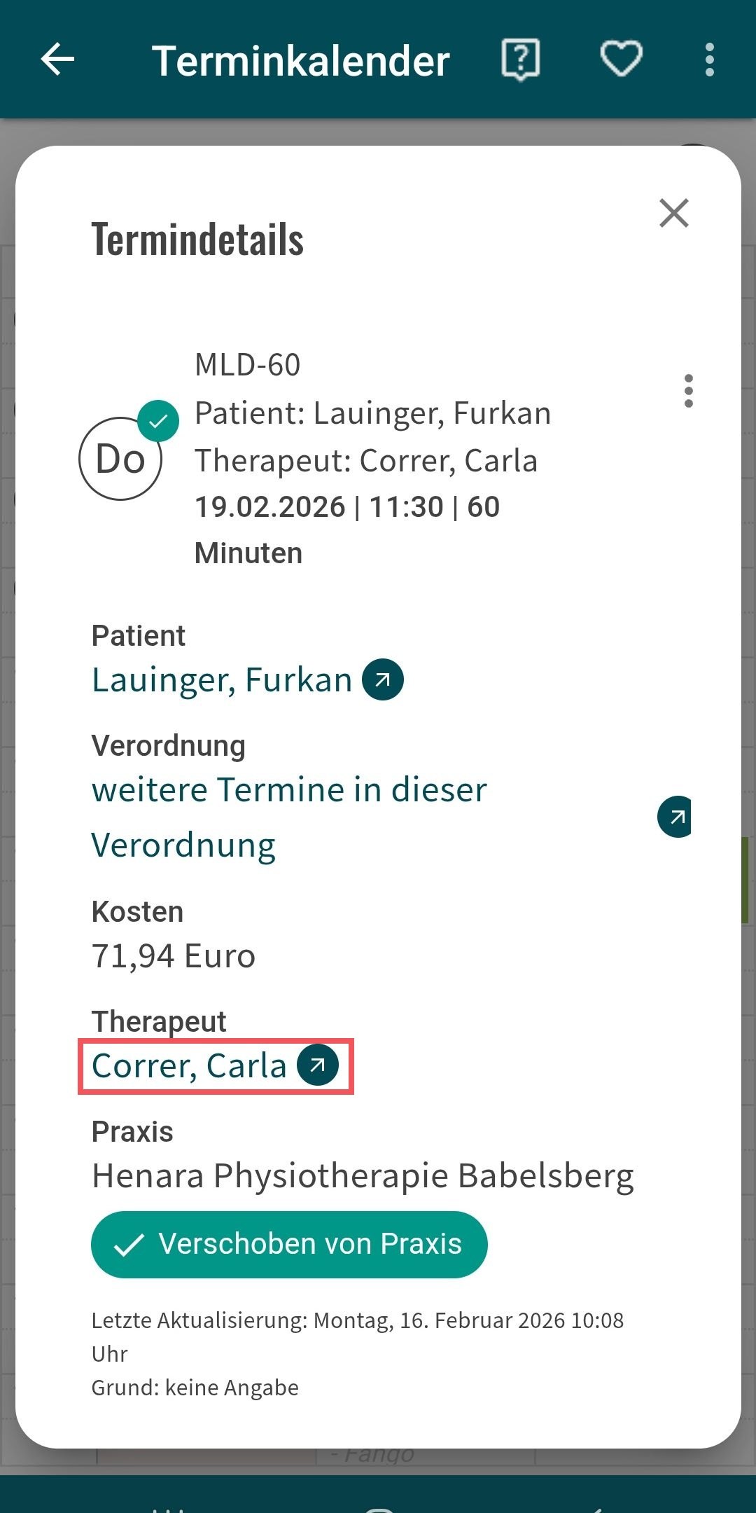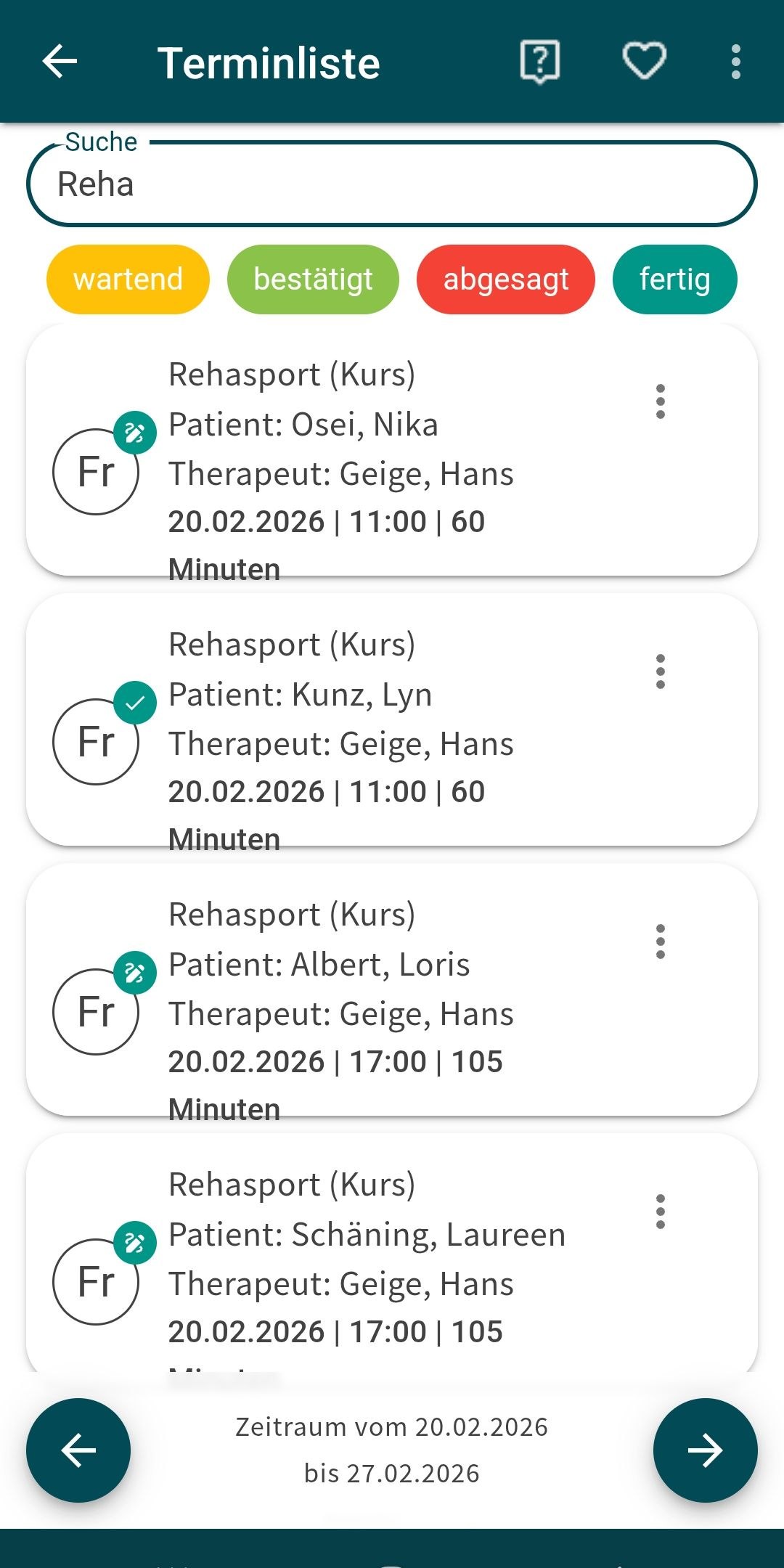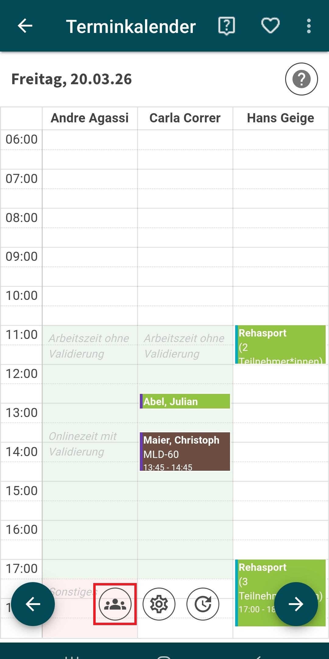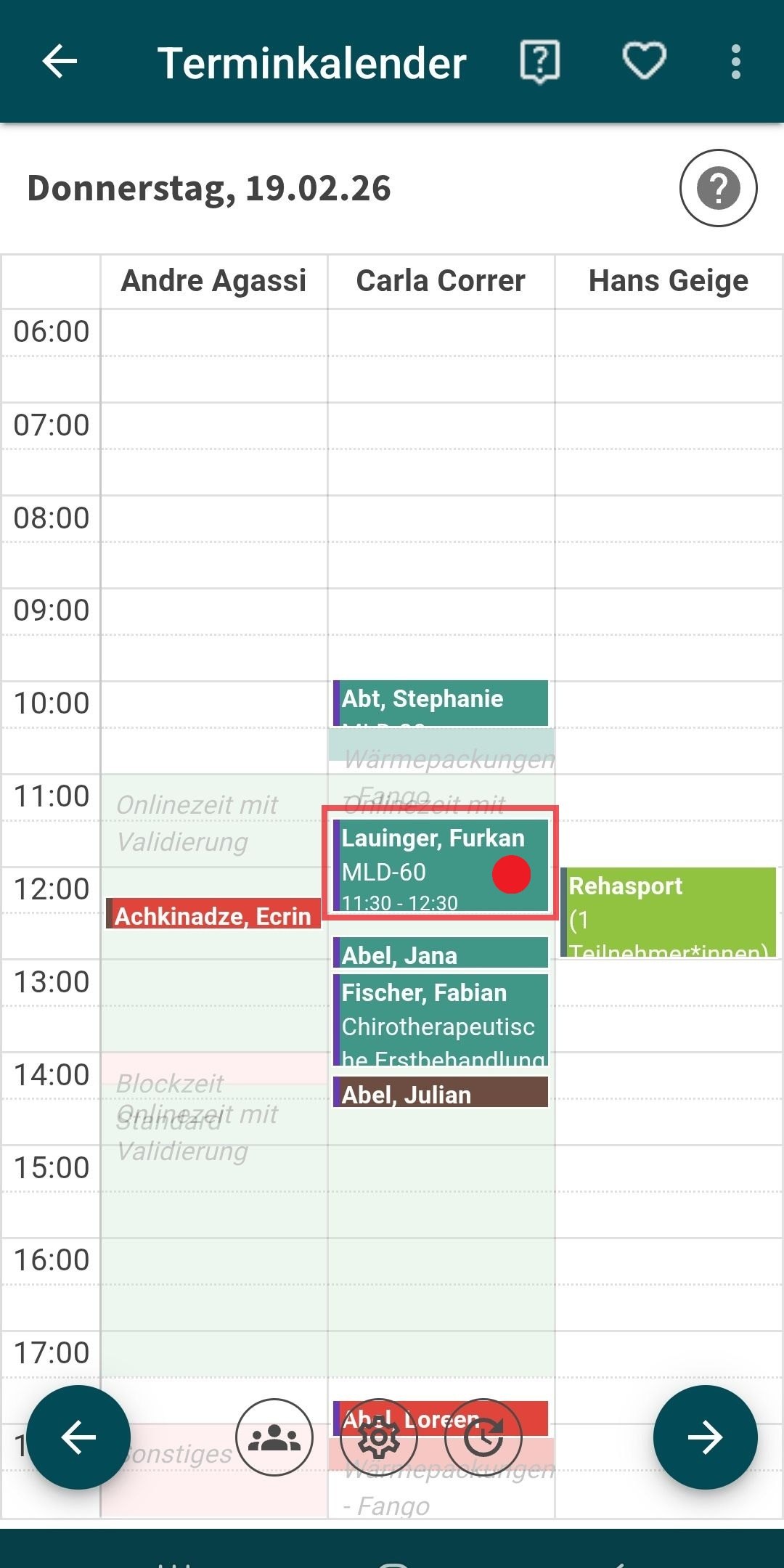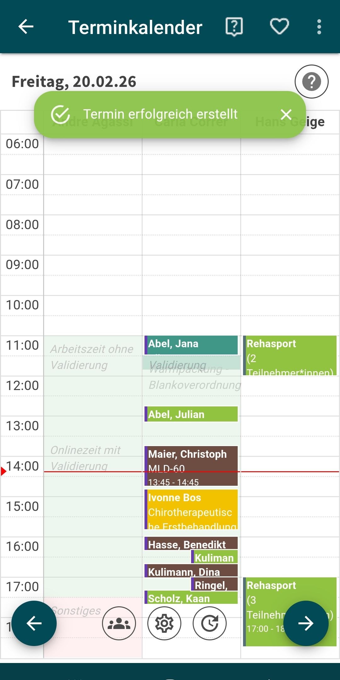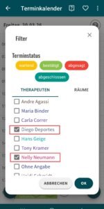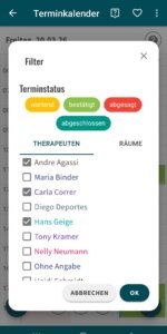 Nun werden die Termine aller Therapeuten in der Praxis angezeigt