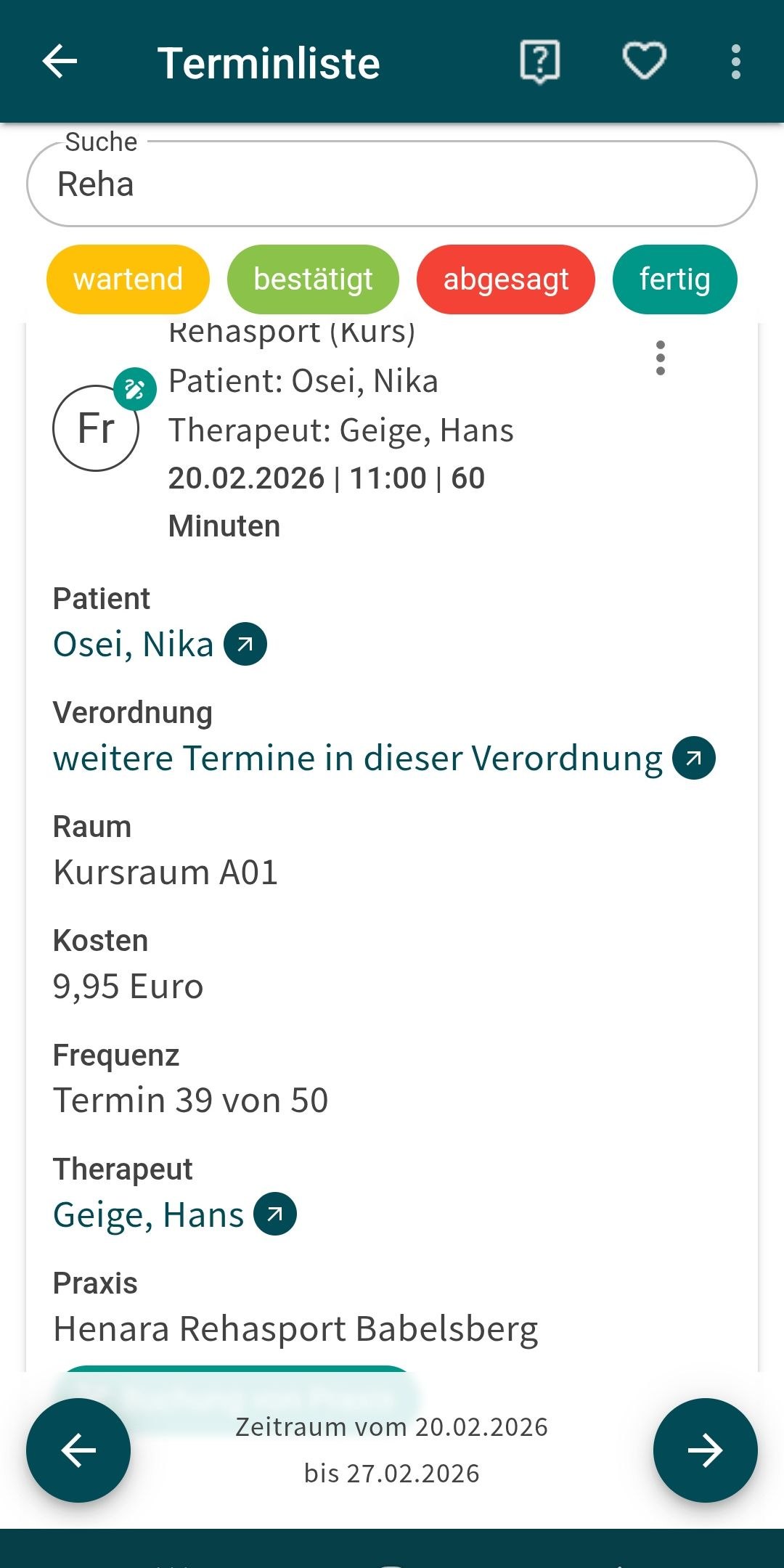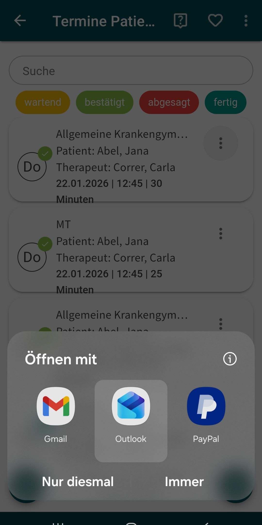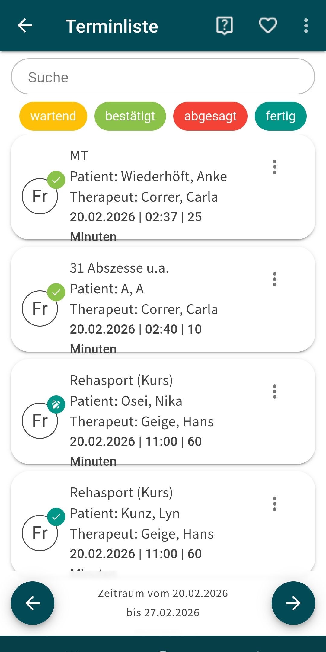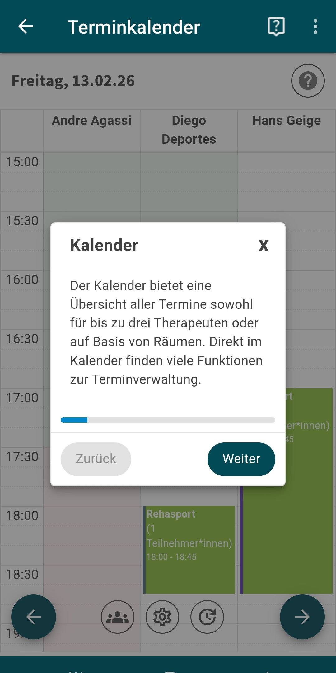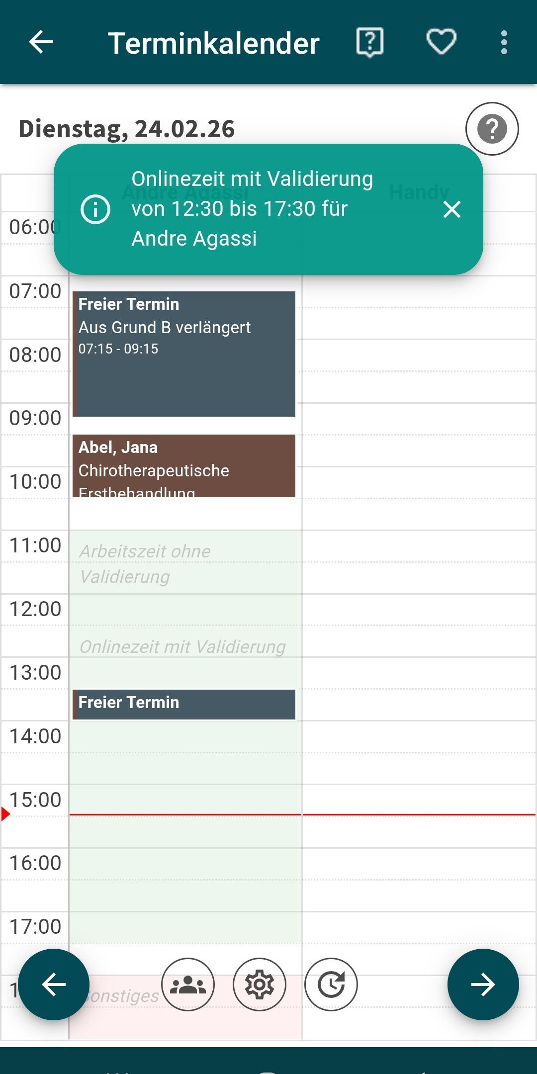 Nun werden die Termine aller Therapeuten in der Praxis angezeigt