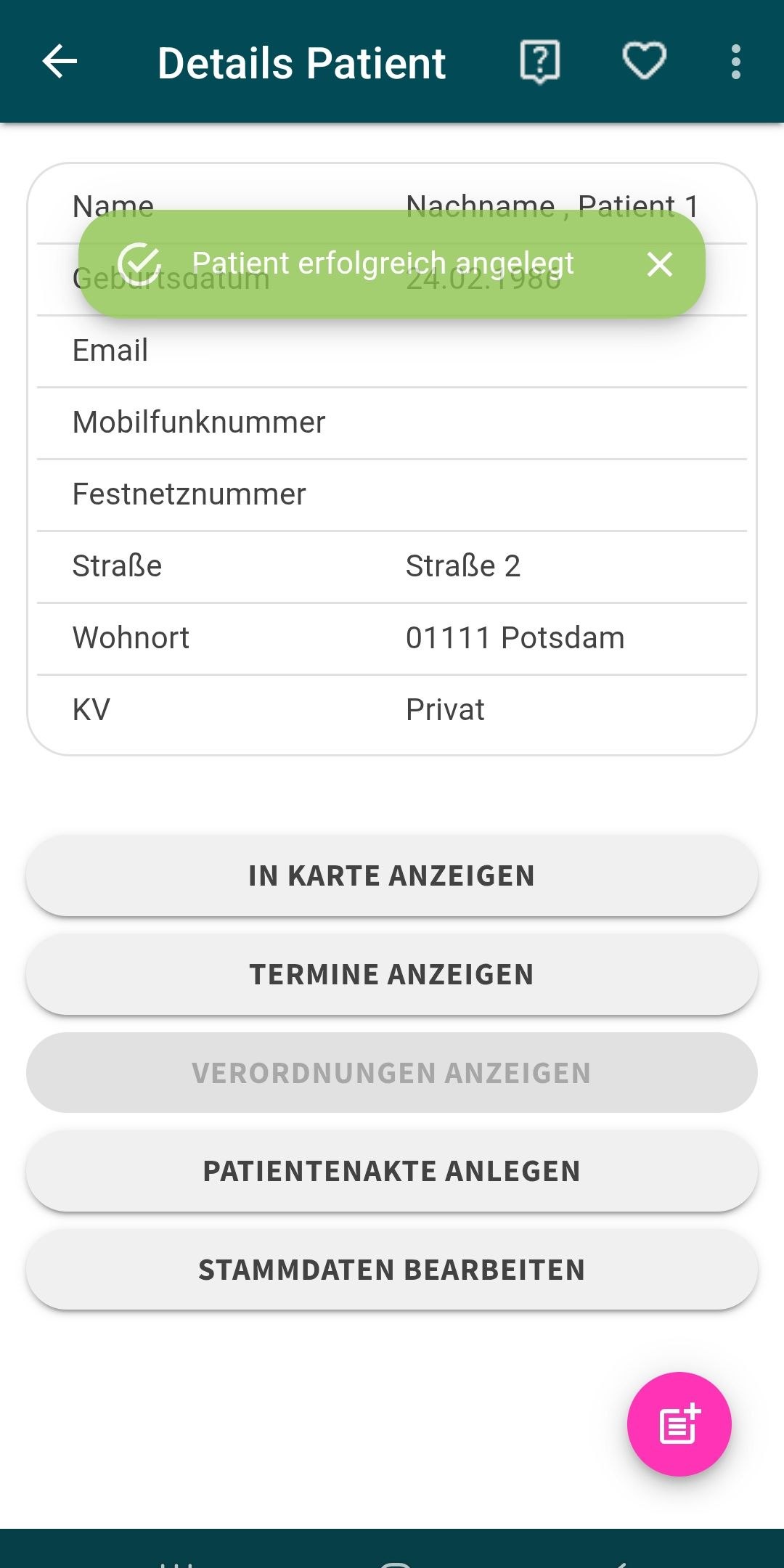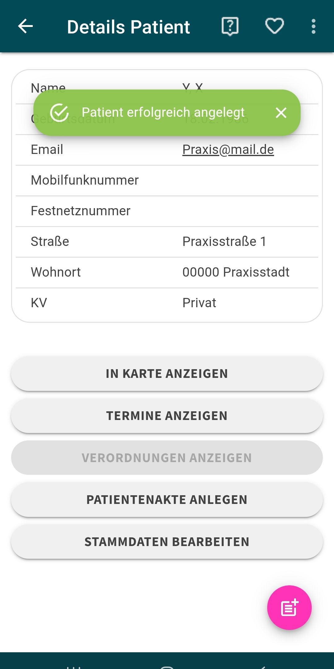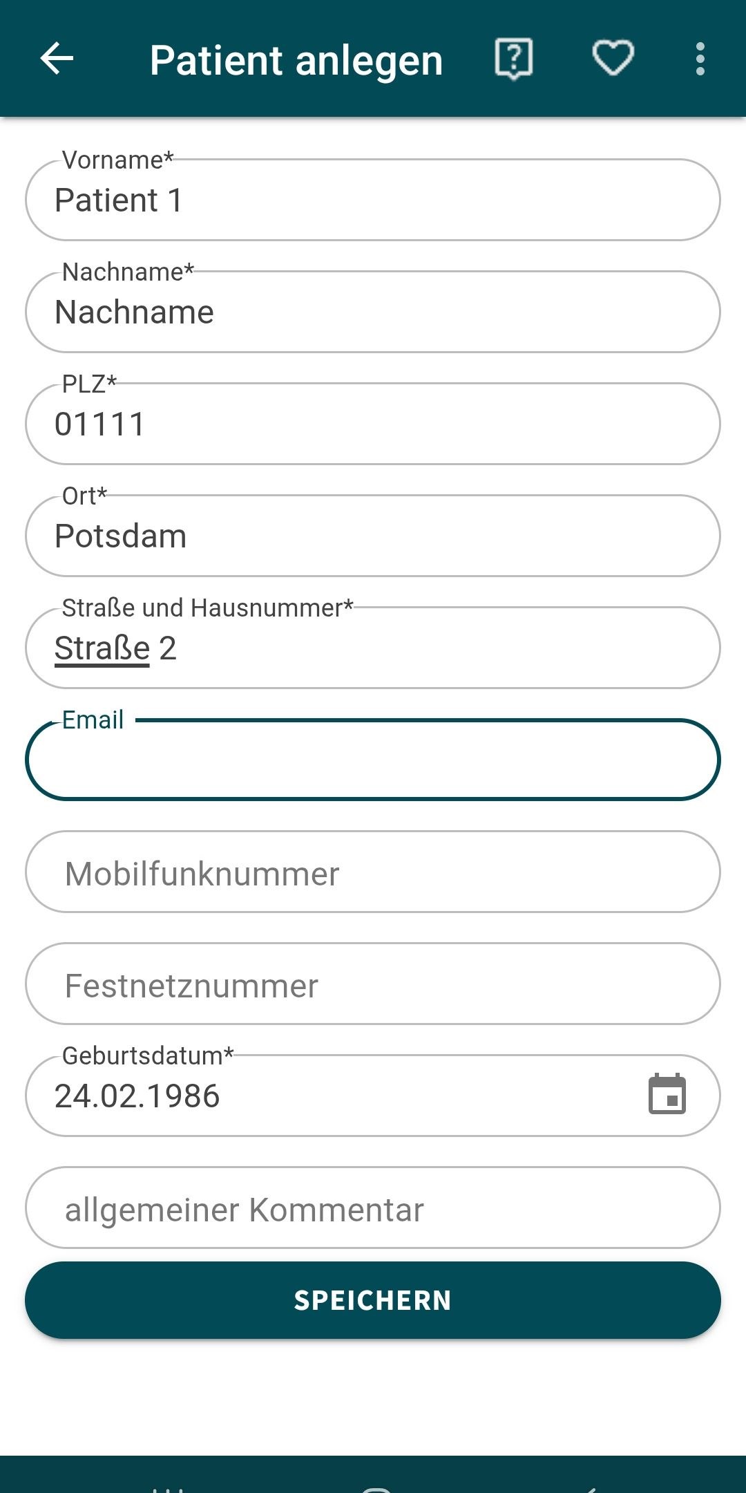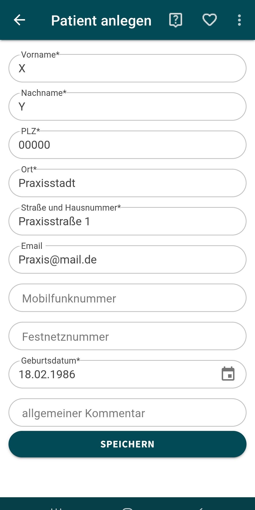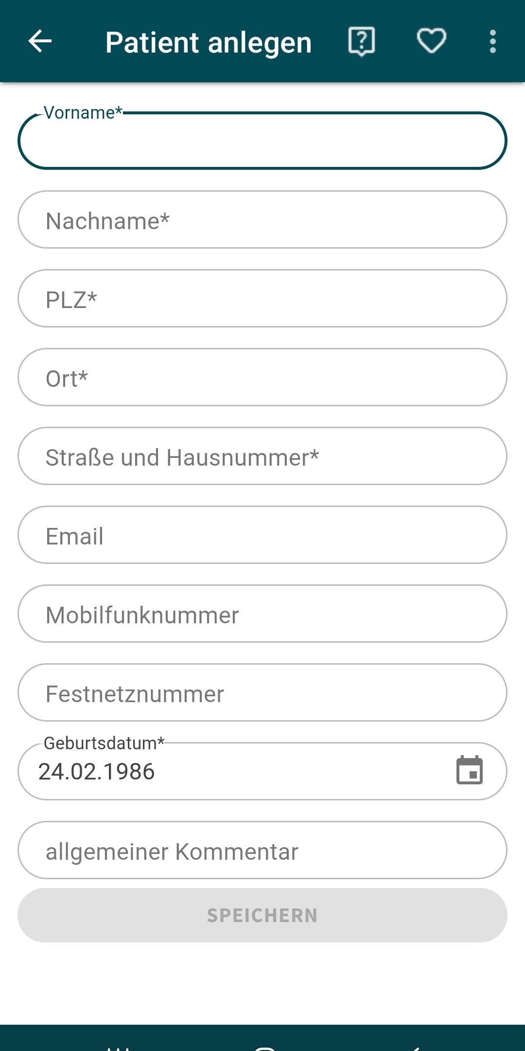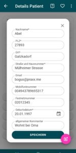 Nun kannst du einen neuen Patienten anlegen: Gib einfach alle relevanten Daten ein und bestätige mit „Speichern“