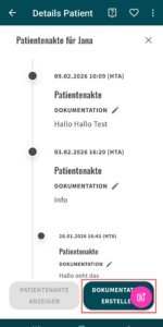 Wenn du „Dokumentation anzeigen wählst, findest du alles zu jeglicher Form von Dokumentation zum Patienten (s. „Dokumentation“)