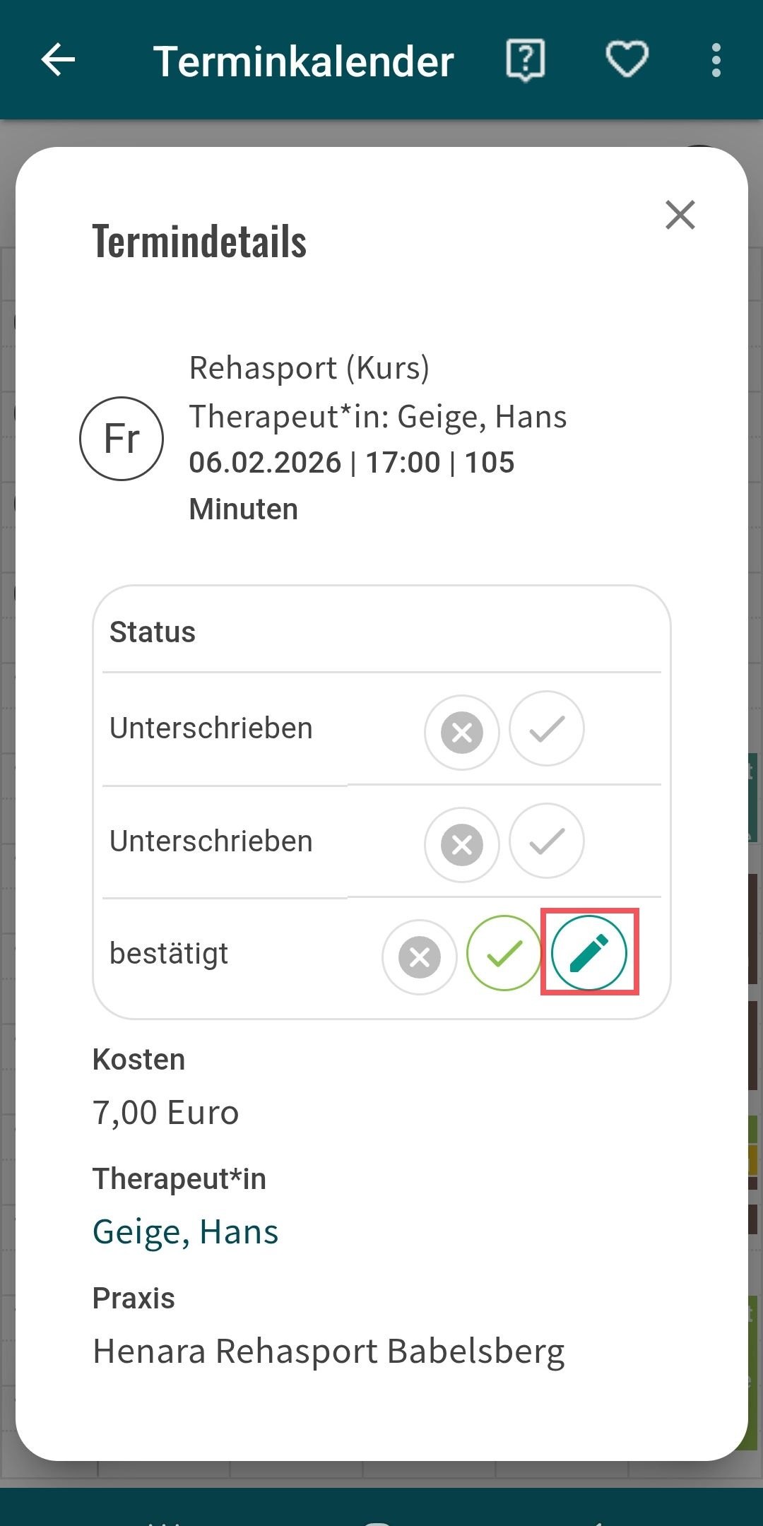 Dort kannst du alle für den Termin relevanten Informationen finden und ändern