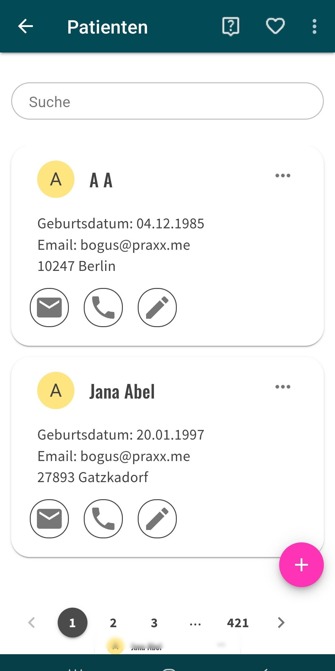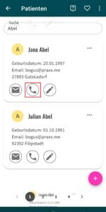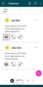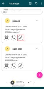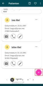 - Du kannst in der Suchleiste den Namen des gewünschten Patienten eingeben