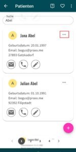 - Drücke beim Namen des Patienten auf die drei kleinen Punkte rechts daneben