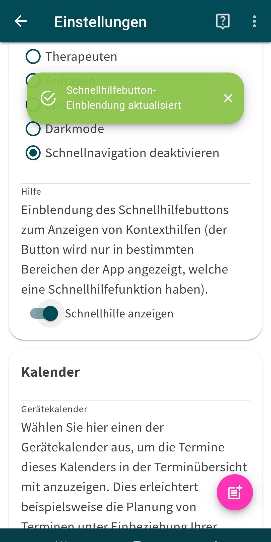 Scrolle runter, bis du zur Überschrift „Kalender“ gelangst