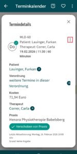 Für anstehende Termine wird in dem Drei-Punkte-Menü neben dem Patientennamen ebenfalls die Option „Erinnerung“ aufgelistet.