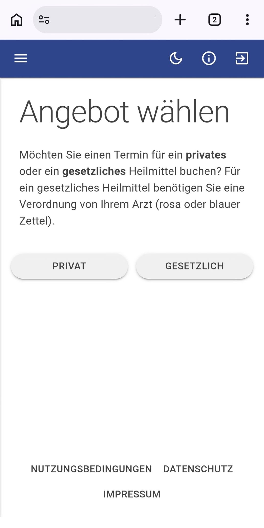 • Danach muss er im Feld „Angebot wählen“ zwischen privatem und gesetzlichem Heilmittel wählen