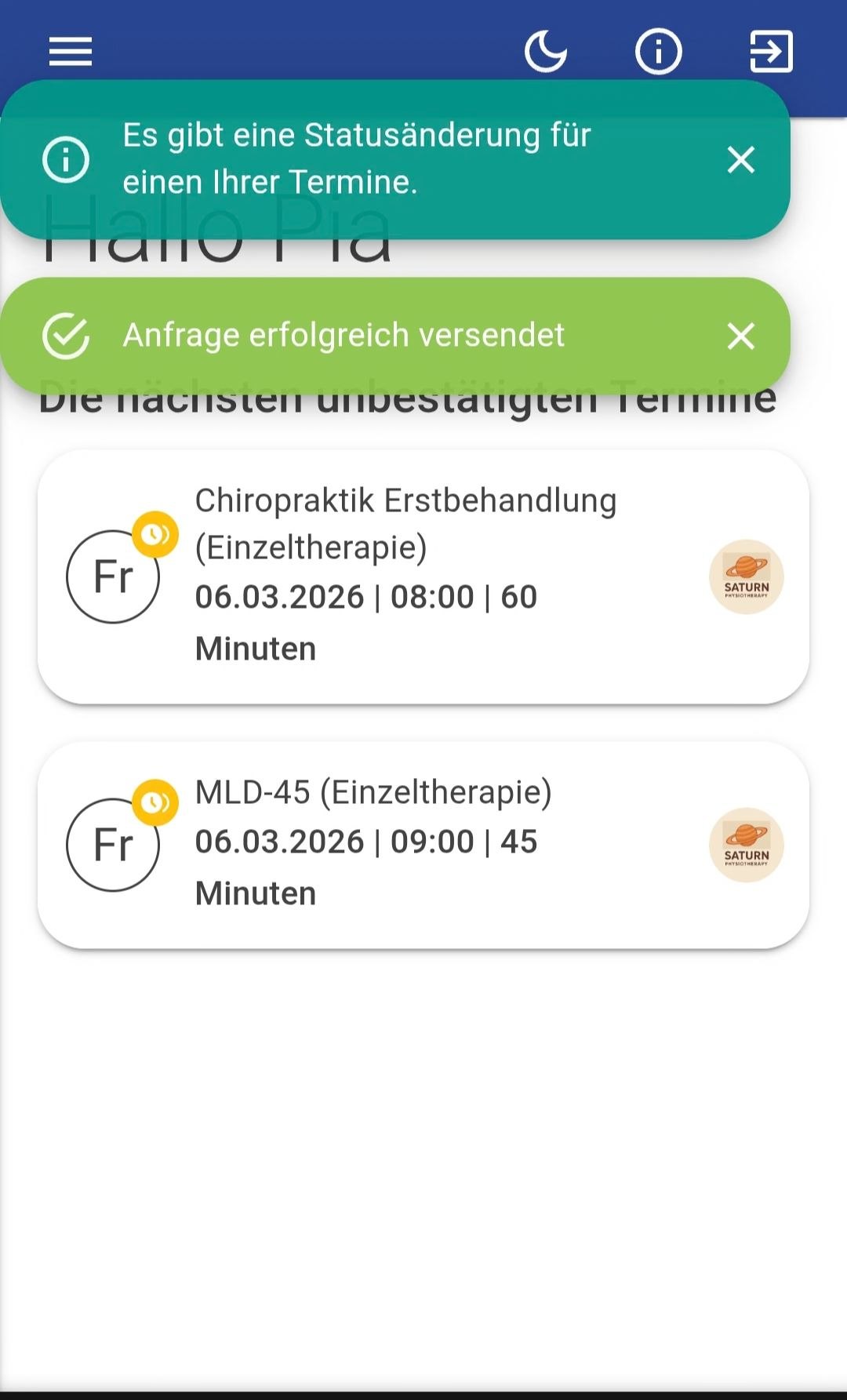 • Nach erfolgreicher Buchung erhält der Patient eine Terminbestätigung