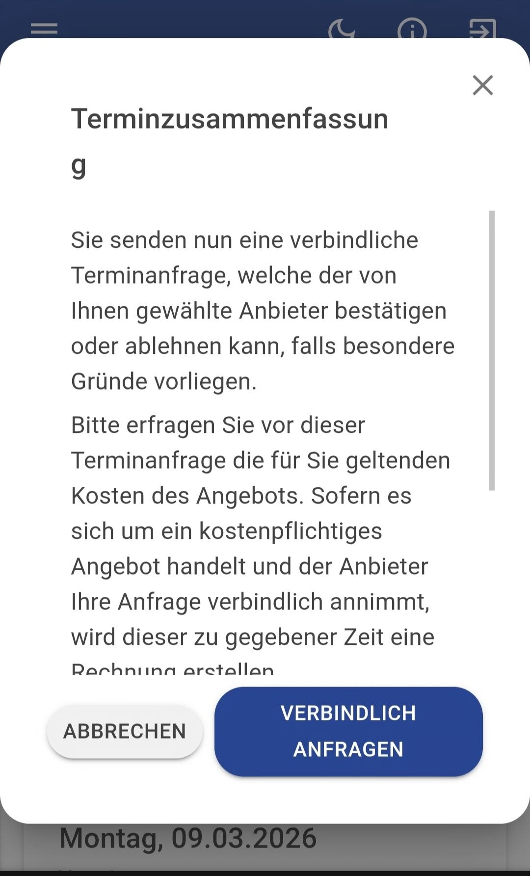 • Im letzten Schritt wird der Patient gefragt, ob er den Termin verbindlich buchen möchte