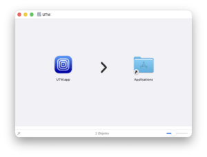 UTM wird anschließend per Drag-and-drop in den Programme-Ordner verschoben. Damit ist die eigentliche Installation abgeschlossen. Weitere Installationsschritte oder Systemanpassungen sind nicht erforderlich.